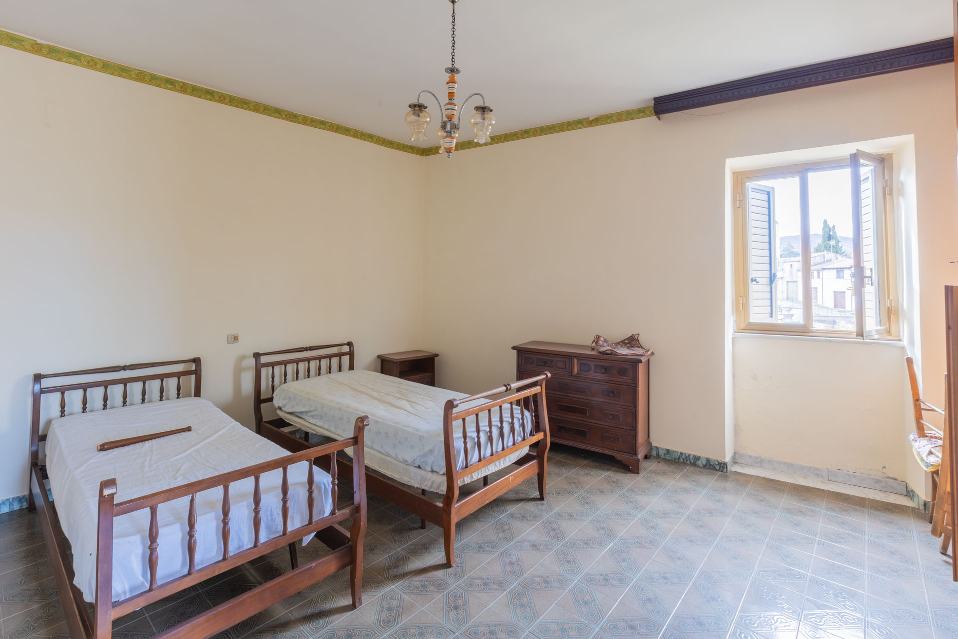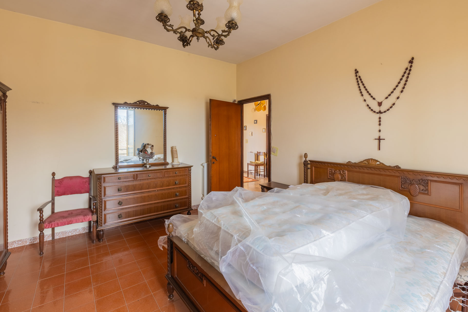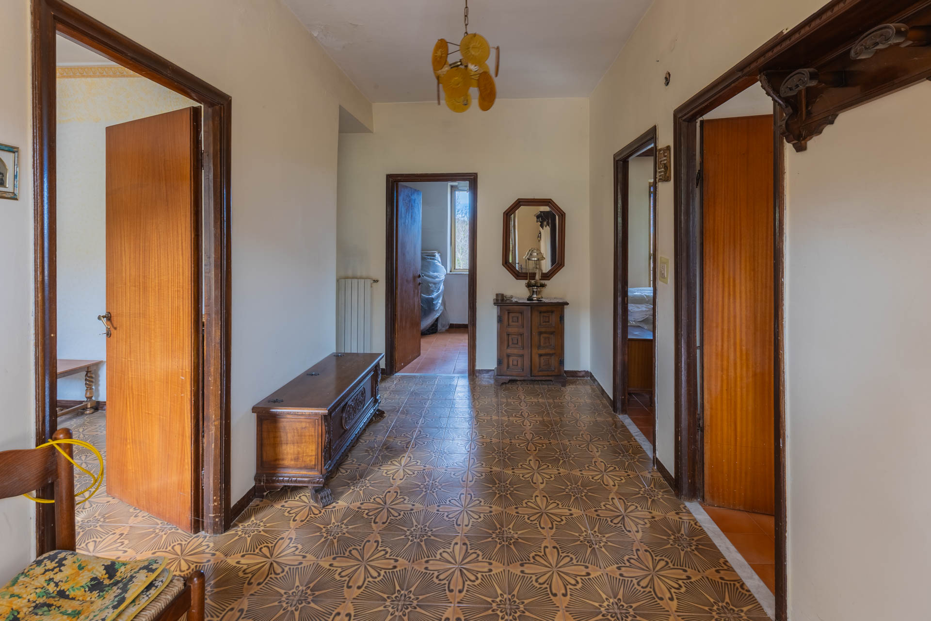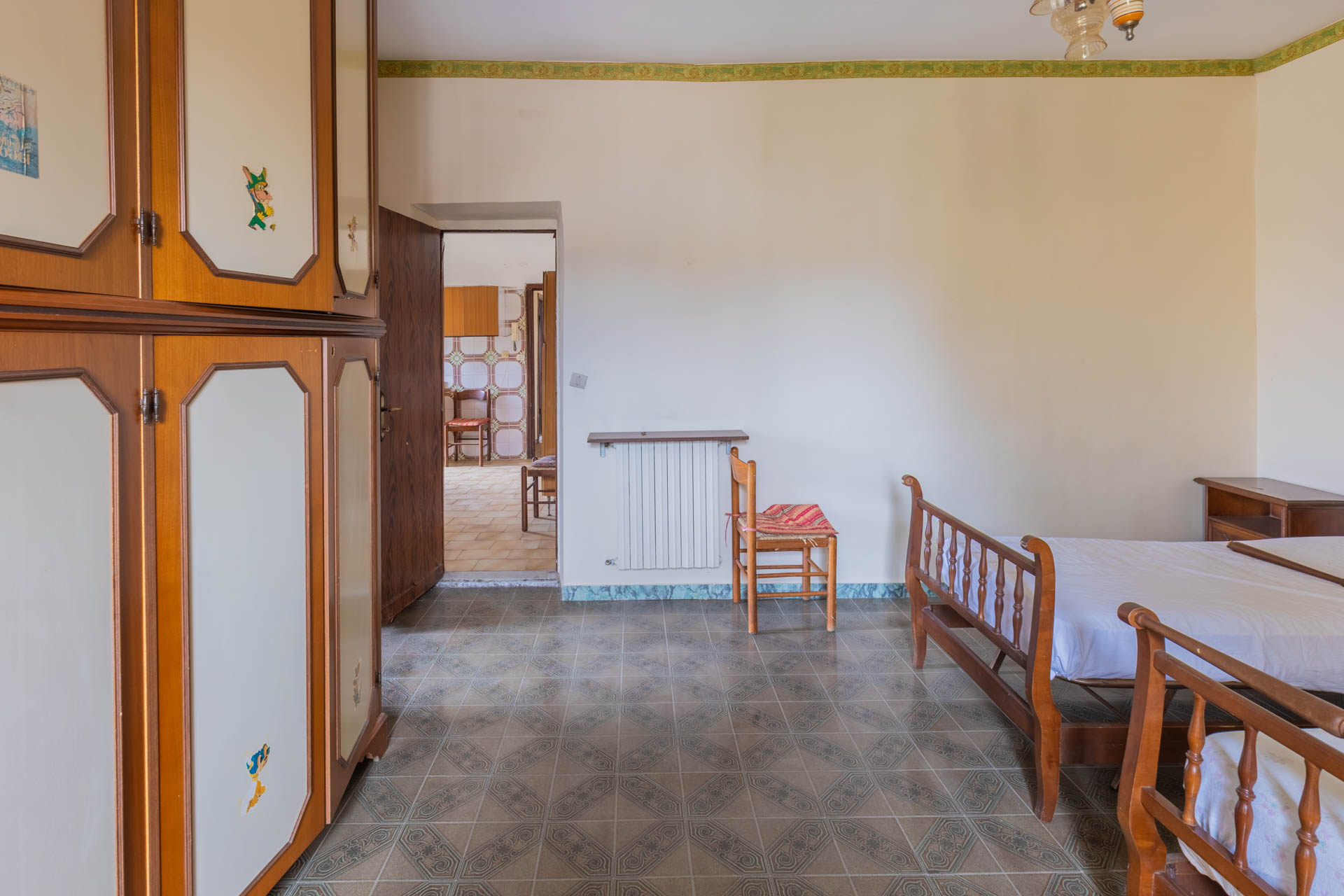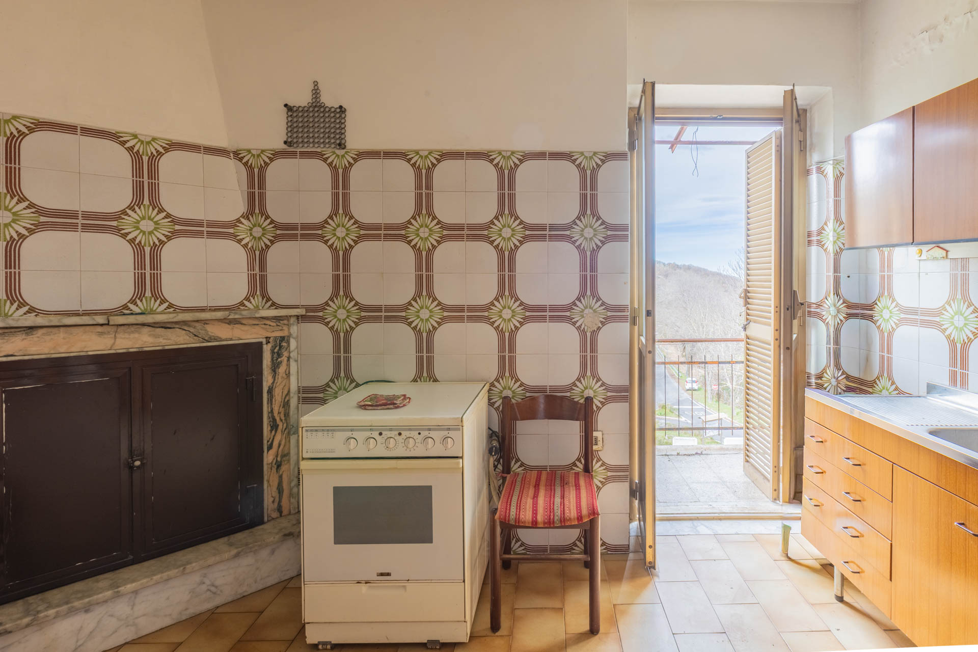 Apartment for sale in Monteflavio (RM), located on the second floor of a building at the entrance to the town, easily accessible by car. The property measures approximately 150 square meters and comprises an entrance hall, large living room, eat-in kitchen with fireplace, four bedrooms, bathroom with tub, and balcony.