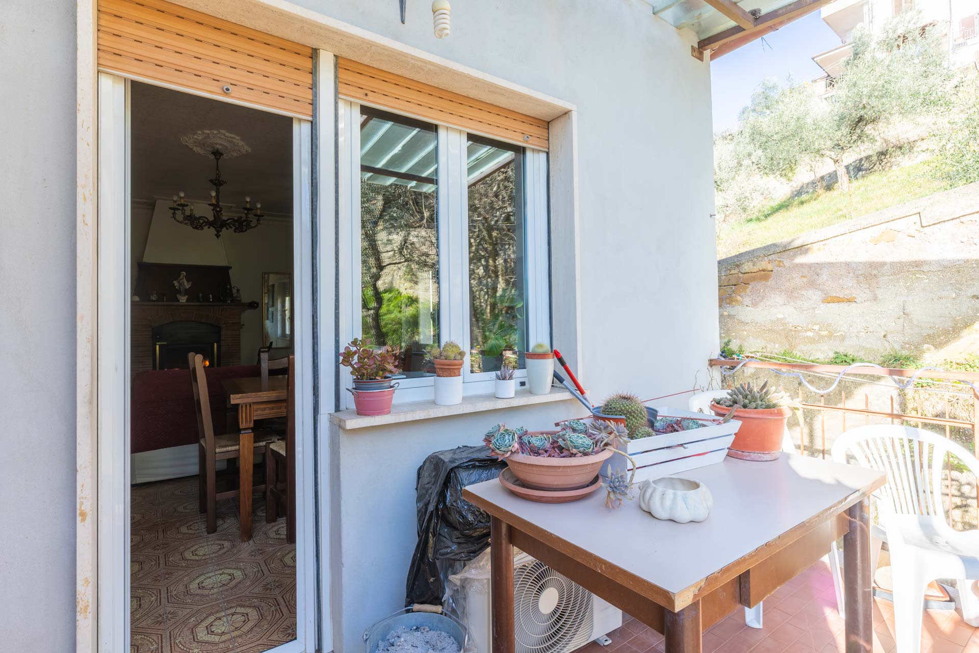 Gli infissi sono dotati di doppio vetro, a garanzia di un adeguato isolamento. Il sistema di riscaldamento è alimentato dal termocamino e da bombolone GPL, con la possibilità di allaccio al metano già presente sotto l’abitazione. L’immobile è servito da acquedotto e fognatura pubblica.