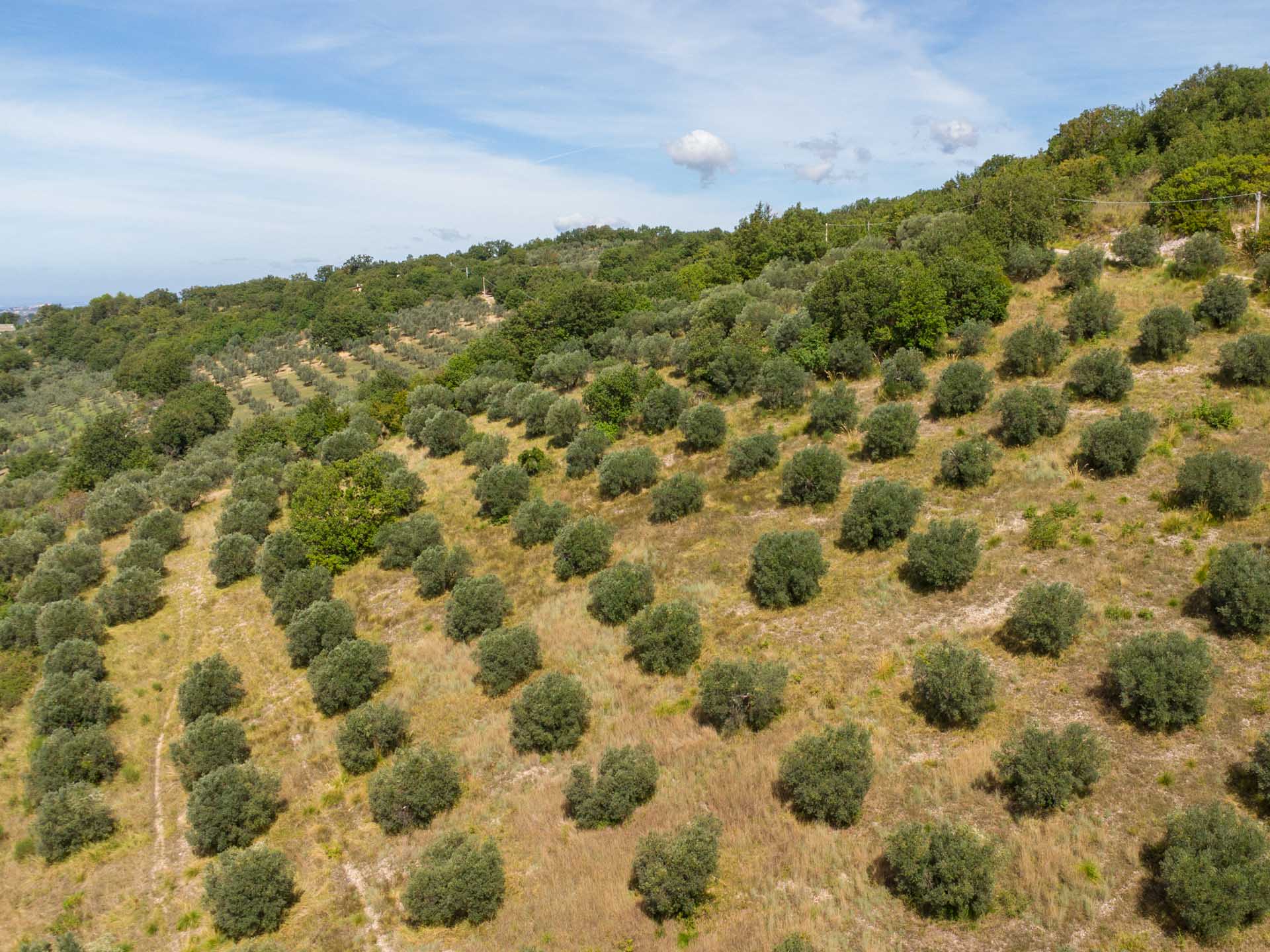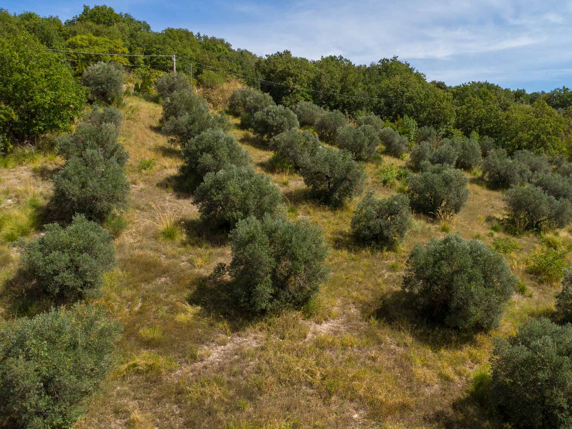 L’appezzamento misura 3.770 mq ed è coltivato a uliveto, con una media pendenza che garantisce un’ottima esposizione e consente comunque la lavorazione.