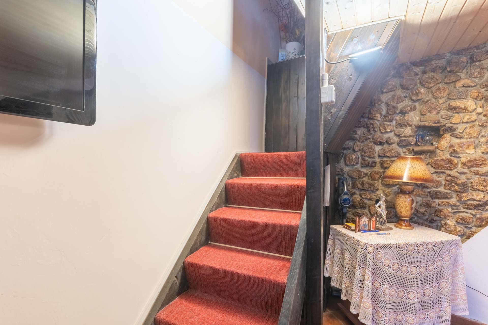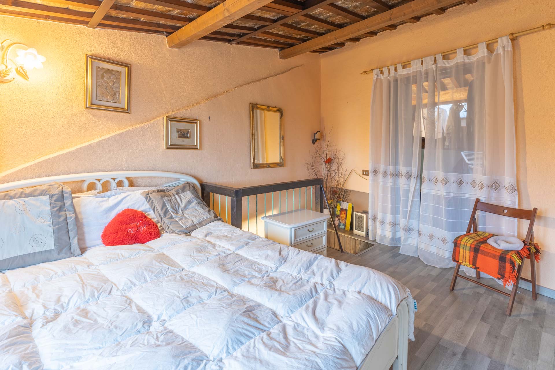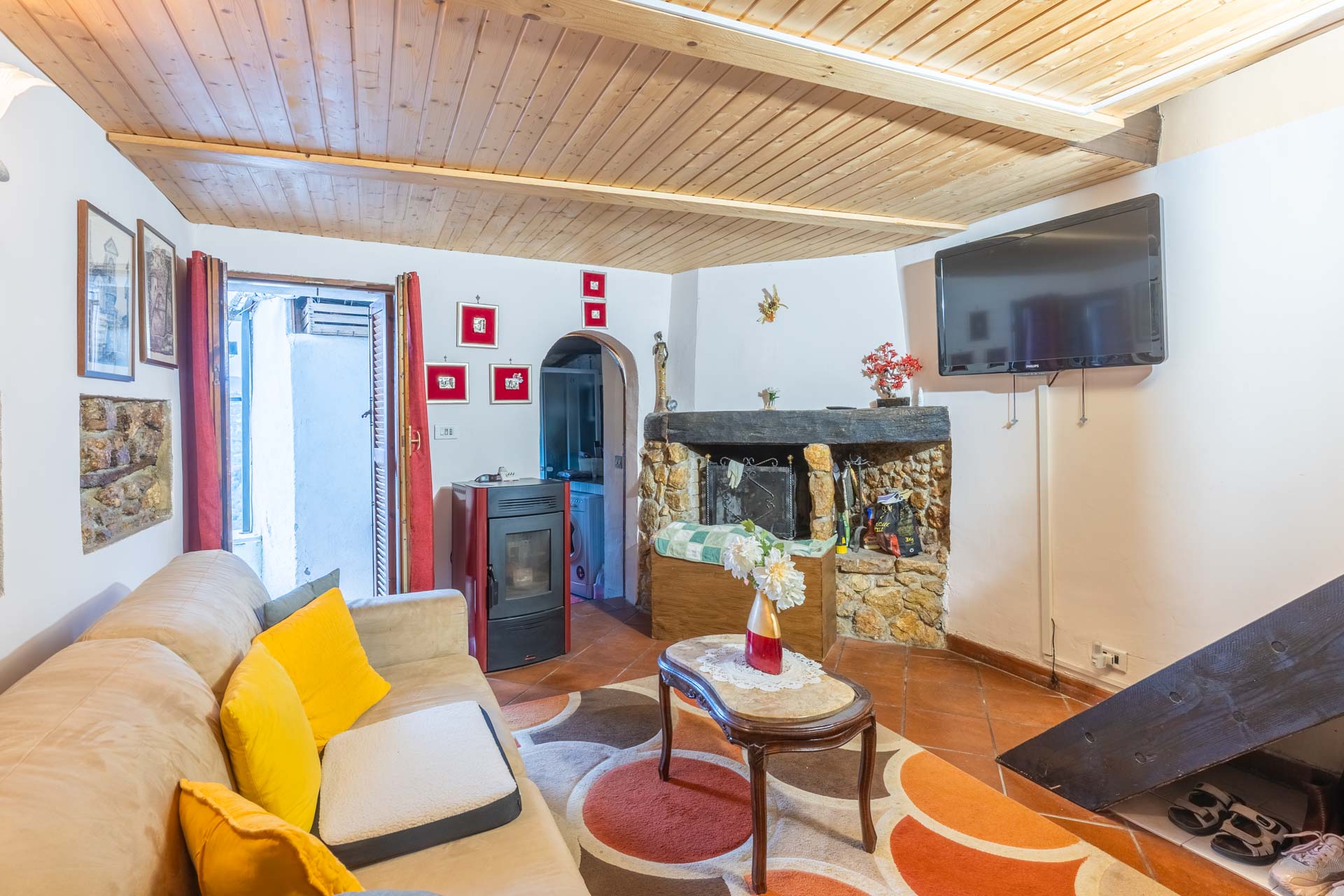 La proprietà è composta da saloncino con camino, cucina abitabile e bagno al piano terra e camera da letto e cabina armadio al piano mansardato.